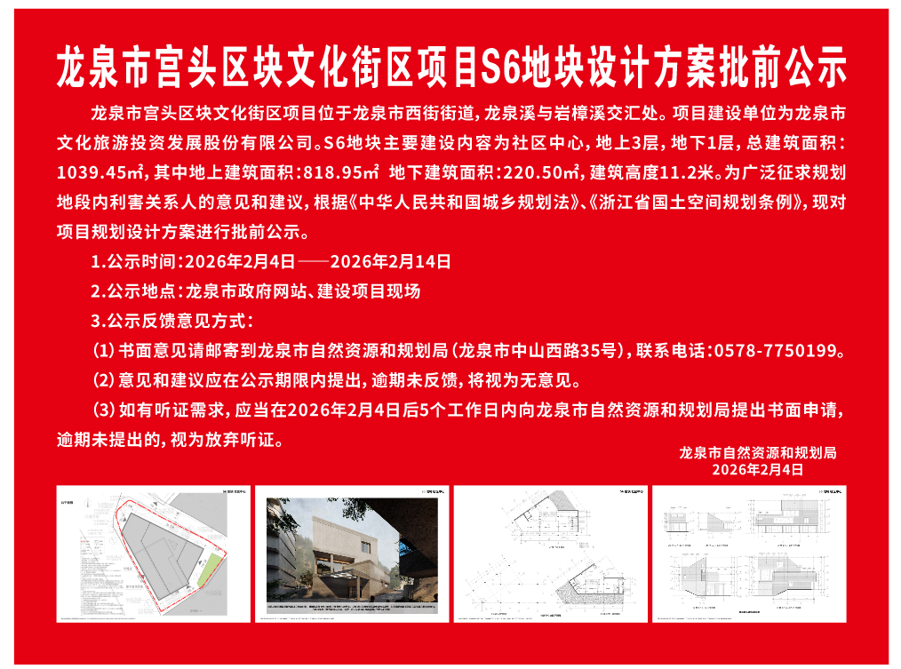 龍泉市宮頭區塊文化街區項目S6地塊設計方案批前公示