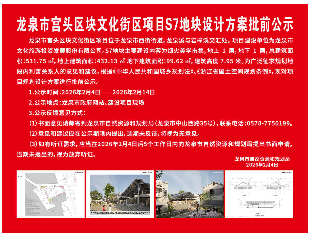 龍泉市宮頭區塊文化街區項目S7地塊設計方案批前公示