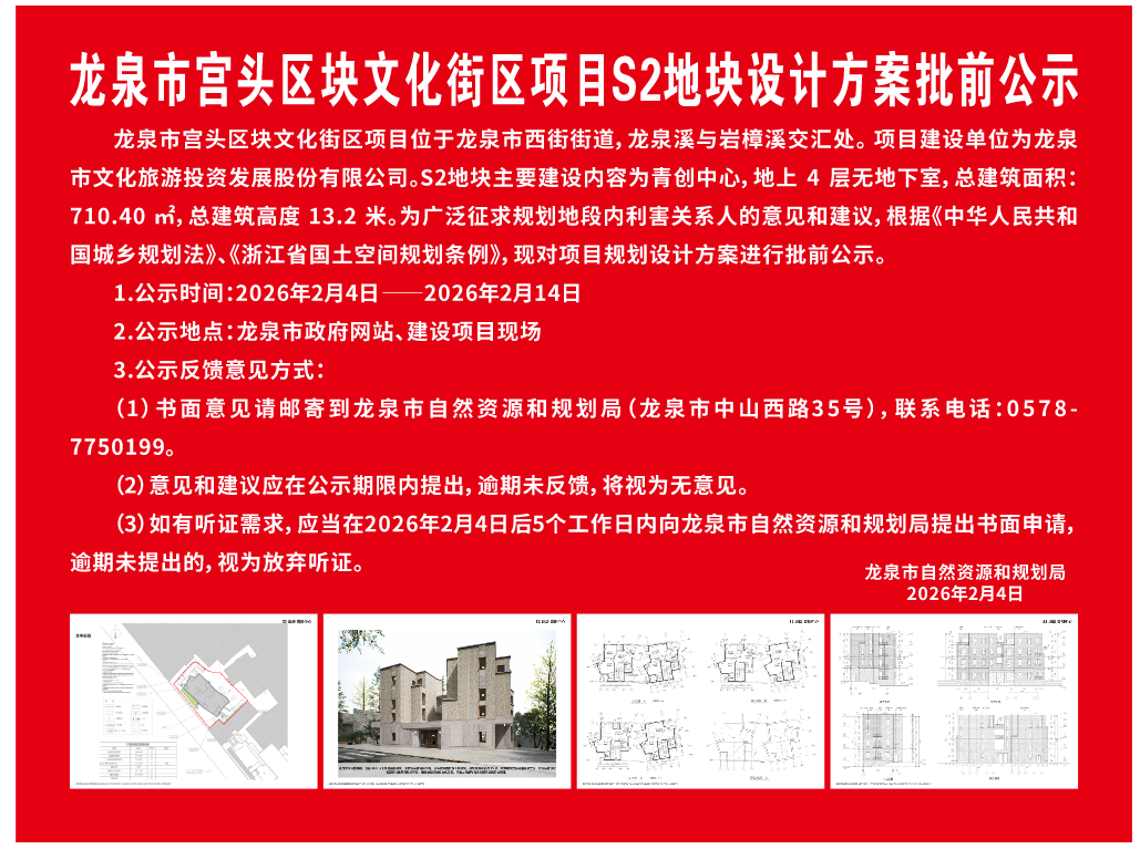 龍泉市宮頭區塊文化街區項目S2地塊設計方案批前公示