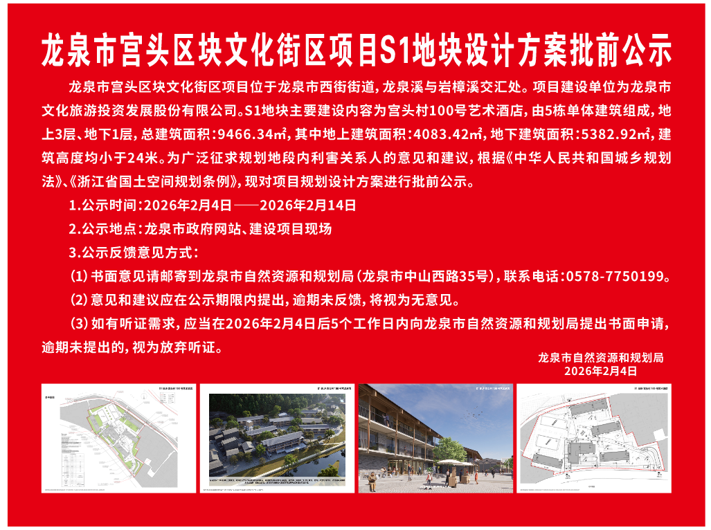 龍泉市宮頭區塊文化街區項目S1地塊設計方案批前公示